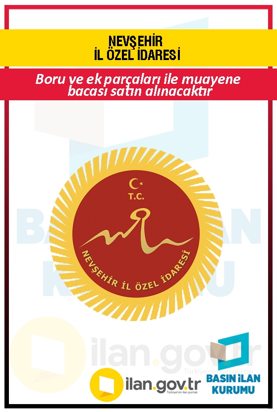 NEVŞEHİR ÖZEL İDARESİ SU VE KANAL HİZMETLERİ MÜDÜRLÜĞÜ tarafından, PVC,PPRC PE İçme Suyu Boruları ve Ek Parçaları ,HDPE Kanalizasyon Koruge Boru ,Muayene Bacası Taban Elemanı Ek Parçaları mal alımı 4734 sayılı Kamu İhale Kanununun 19 uncu maddesine göre açık ihale usulü ile ihale edilecek olup, teklifler sadece elektronik ortamda EKAP üzerinden alınacaktır.