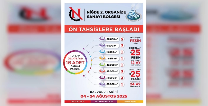 Valiliğin açıklamasında, altyapı çalışmalarının büyük ölçüde tamamlandığı ve ulaşım avantajlarıyla öne çıkan Niğde 2. OSB'nin, istihdama ve şehrin ekonomik büyümesine katkı sağlayacağı belirtildi. 5 bin metrekare ile 68 bin metrekare arasında değişen büyüklükteki parseller için başvurular 4-24 Ağustos 2025 tarihleri arasında kabul edilecek.