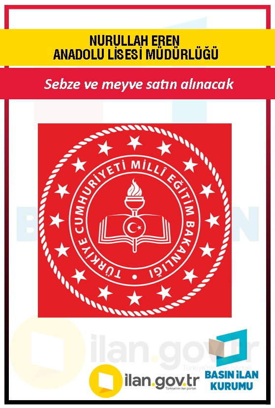 ANADOLU LİSESİ-NURULLAH EREN MİLLİ EĞİTİM BAKANLIĞI BAKAN YARDIMCILIKLARI tarafından, YAŞ SEBZE VE MEYVE mal alımı 4734 sayılı Kamu İhale Kanununun 19 uncu maddesine göre açık ihale usulü ile ihale edilecek olup, teklifler sadece elektronik ortamda EKAP üzerinden alınacaktır.