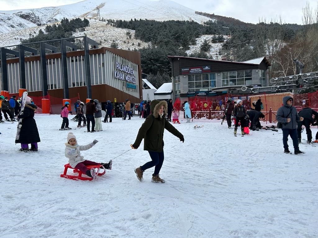 Türkiye'nin en önemli kayak merkezlerinden olan Palandöken Kayak Merkezinde yarıyıl tatiline çıkan öğrenciler ve aileleri yoğunluk oluşturmaya devam ediyor. Yoğun geçen derslerden sonra çocuklar kayak yaparak stres atarken aileleri de onlara eşlik ediyor.