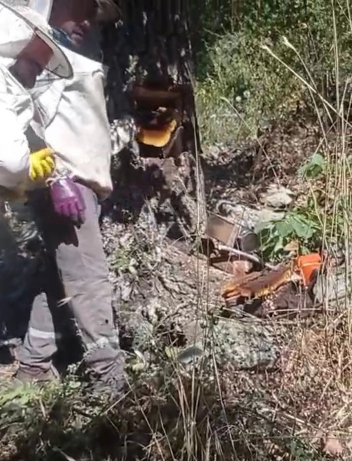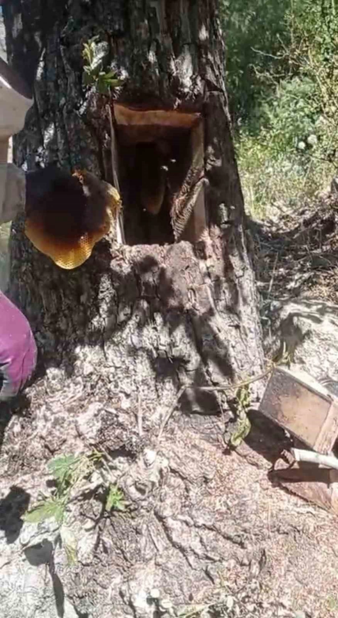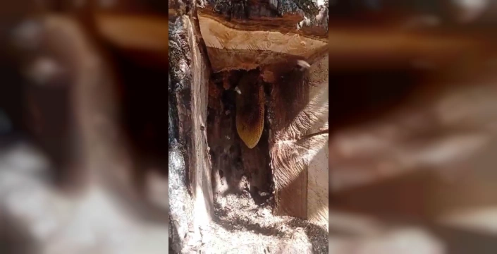 Elazığ'ın Palu ilçesinde iki kişi, arıların izini sürerek doğanın sunduğu organik bir bal hasadı gerçekleştirdi.