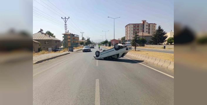 79 AAH 588 plakalı otomobil, Ağrı istikametinden Van yönüne giderken sürücüsü direksiyon hakimiyetini kaybetti. Kontrolden çıkan araç kaldırıma çarptı ve takla attı. Yol ortasında duran araçta büyük hasar meydana geldi.