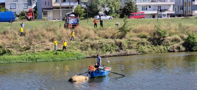 Samsun'un Terme ilçesinde yaşanan üzücü bir olayda, bir büyükbaş hayvan Terme Çayı'na düşerek telef oldu. Olay, hayvanın otlarken ayağının kayması sonucu meydana geldi. Hayvanın suda çırpınarak boğulduğu belirtiliyor. Bölge halkının ihbarı üzerine olay yerine Samsun Büyükşehir Belediyesi itfaiye ekipleri, Terme Arama Kurtarma Ekibi (TAKE) ve Terme Belediyesi ekipleri sevk edildi.