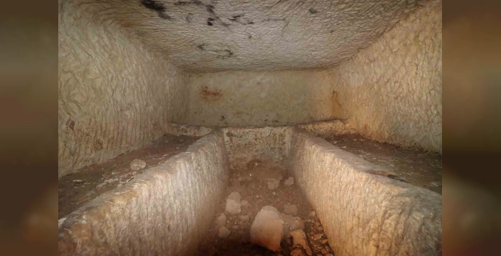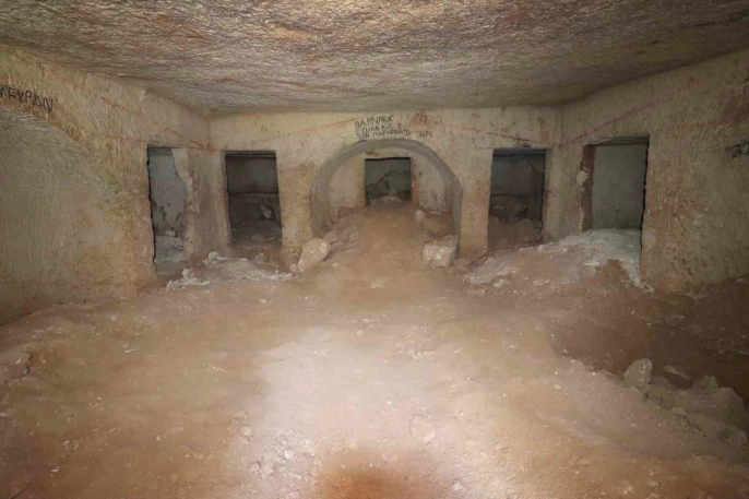 Suruç’a bağlı Köseveli Mahallesi’nde, mahalle merkezinin yaklaşık 1 kilometre batısında yer alan kaya mezarın detaylarını paylaşan Vali Şıldak, mezarın dromoslu ve tek odalı formda, doğu-batı doğrultusunda uzandığını belirtti. Açıklamada, dromosun her iki yanında 3 adet niş bulunduğu, kapı açıklığının batı yönde olduğu ve iç mekanın kapı girişinin yanında bir haç betiminin görüldüğü ifade edildi.