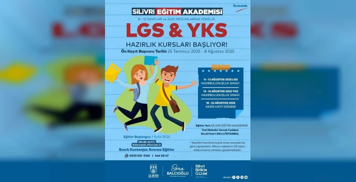 Ücretsiz olarak sunulacak kurslar, Silivri Eğitim Akademisi'nde (Yeni Mahalle Varnalı Caddesi No: 23 Kat: 1 Silivri/İstanbul) 1 Eylül 2025'te başlayacak. Detaylı bilgi almak isteyen öğrencilerimiz ve velilerimiz, 444 20 47 (dahili 1596) veya 0533 021 51 65 numaralı telefonlardan destek alabilirler. Bu anlamlı girişim, gençlerimizin eğitim hayatlarına verilen önemi bir kez daha göstermektedir. Ülkemizin geleceği için çalışan tüm eğitimcilerimize ve Silivri Belediyesi'ne teşekkürlerimizi sunuyoruz.