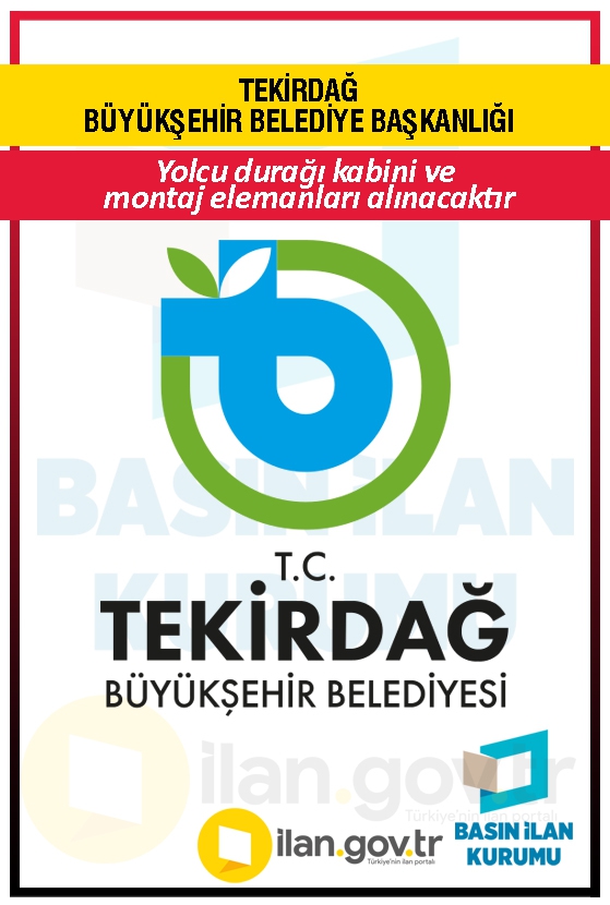 TEKİRDAĞ BÜYÜKŞEHİR BELEDİYE BAŞKANLIĞI tarafından, Kabin tip yolcu durağı ve bakım onarım montaj elemanları mal alımı 4734 sayılı Kamu İhale Kanununun 19 uncu maddesine göre açık ihale usulü ile ihale edilecek olup, teklifler sadece elektronik ortamda EKAP üzerinden alınacaktır.