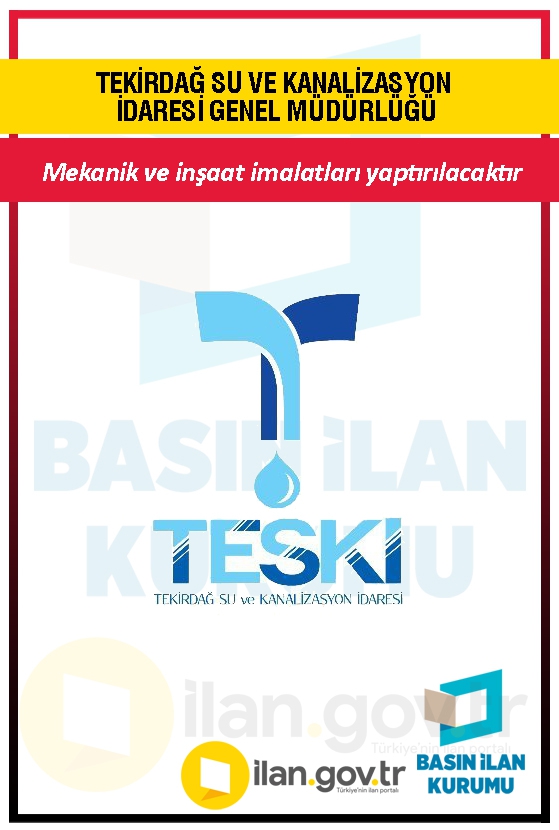 TEKİRDAĞ SU VE KANALİZASYON İDARESİ GENEL MÜDÜRLÜĞÜ DESTEK HİZMETLERİ DAİRE BAŞKANLIĞI tarafından, Tekirdağ İli Genelinde Açılan Su Sondaj Kuyularının Mekanik ve İnşaat İmalatlarının Yapılması İşi yapım işi 4734 sayılı Kamu İhale Kanununun 19 uncu maddesine göre açık ihale usulü ile ihale edilecek olup, teklifler sadece elektronik ortamda EKAP üzerinden alınacaktır.