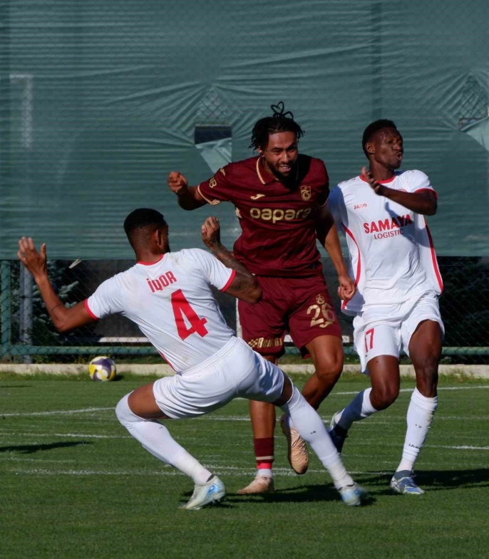 Palandöken Yüksek İrtifa Kamp Merkezi’ndeki hazırlık kampının üçüncü gününde, 2025-2026 sezonu hazırlıkları çerçevesinde Trabzonspor, Azerbaycan temsilcisi Araz Nahçıvan ile karşılaştı. Bordo-mavili ekip maça; Uğurcan Çakır, Mustafa Eskihellaç, Batagov, Stefan Savic, Wagner Pina, Batista Mendy, Folcarelli, Okay, Nwakaeme, Zubkov ve Onuachu 11’i ile başladı. Trabzonsporlu oyuncu Paul Onuachu sol ayağına aldığı darbe nedeniyle sakatlanarak maçtan çıkmak zorunda kaldı. Maçın 37. dakikasında Azerbaycan takımı Poli’nin golüyle 1-0 öne geçti. Bordo-mavili takımdan Mendy 42. dakikasında skoru dengeye getirdi. Karşılaşmanın ilk yarısı da bu skorla biterken, 49. dakikasında Araz Nahçıvan, Bahtiyar golüyle 2-1 öne geçti. 63. dakikasında Okay Yokuşlu attığı golle 2-2 oldu. 78. dakikasında Slavik, Araz Nahçıvan’ın galibiyet golünü kaydetti ve maç 3-2’lik skorla tamamlandı.