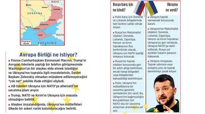 Trump, önce Ukrayna Devlet Başkanı Volodimir Zelenskiy’le, ardından Avrupa Komisyonu Başkanı Ursula von der Leyen, NATO Genel Sekreteri Mark Rutte, Fransa Cumhurbaşkanı Emmanuel Macron, Almanya Şansölyesi Friedrich Merz, İngiltere Başbakanı Keir Starmer, İtalya Başbakanı Giorgia Meloni ve Finlandiya Cumhurbaşkanı Alexander Stubb ile görüştü. Putin’le yaptığı görüşme Kremlin tarafından da doğrulandı. Putin’in yardımcısı Yuri Uşakov, görüşmenin 40 dakika sürdüğünü ve yapıcı geçtiğini söyledi. Trump, Rusya ve Ukrayna liderleri arasında bir görüşme ayarlamaya başladığını ve bu görüşmenin ardından üçlü bir görüşme olacağını belirtti. ABD basını, bu görüşmelerin bu ayın sonu işaret ettiğini yazdı.