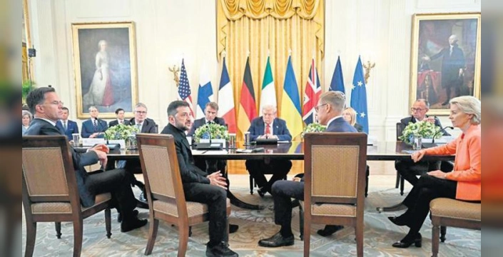 ABD Başkanı Donald Trump’ın başlattığı Ukrayna savaşının sonlandırılmasına yönelik çabalar çerçevesinde Beyaz Saray’da dün hareketli bir gün yaşandı, ancak ateşkes ya da savaşı bitirecek somut bir karar çıkmadı. Avrupalı liderlerle yaptığı toplantıda bir ara dışarı çıkan Trump, Rusya Devlet Başkanı Vladimir Putin’le yaklaşık 40 dakika görüştü ve Rus ve Ukraynalı liderler arasında bir görüşme ayarlamak için çalıştığını açıkladı.