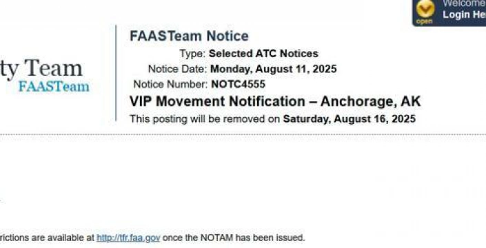 ABD Başkanı Donald Trump ve Rusya Devlet Başkanı Vladimir Putin, Cuma günü Alaska'nın Anchorage kentinde bir araya gelecek. ABD havacılık yetkilileri, iki liderin görüşmesinin yapılacağı 15 Ağustos tarihinde, Anchorage kentinin üzerinde 48.3 kilometrelik bir yarıçapta hava sahasını kapatacaklarını açıkladı. Kısıtlamanın bir gün süreceği belirtildi. Bu tarihi görüşmeye üç gün kala, lojistik ve jeopolitik konularda hala kesinleşmemiş meseleler bulunuyor.