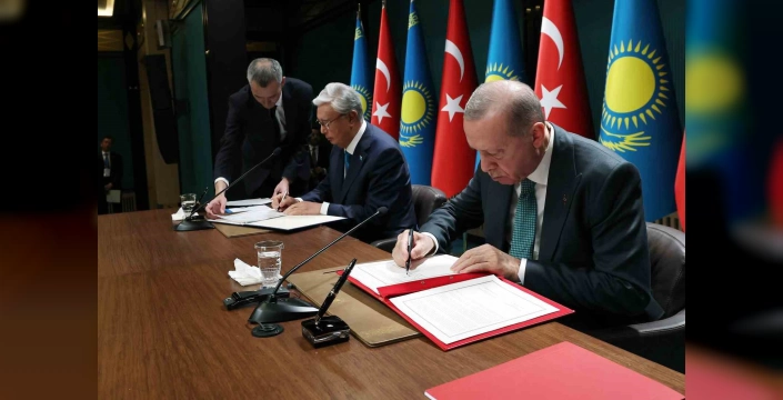 Cumhurbaşkanı Recep Tayyip Erdoğan ve Kazakistan Cumhurbaşkanı Kasım-Cömert Tokayev'in huzurunda, iki ülke arasındaki stratejik iş birliğini güçlendirecek 20 önemli anlaşma imzalandı. Bu anlaşmalar, enerji, sağlık, eğitim, ulaşım, savunma ve daha birçok alanda karşılıklı iş birliğini derinleştirecek adımlar içeriyor. İki liderin katılımıyla gerçekleşen imza töreni, Türkiye-Kazakistan ilişkilerinin yeni bir döneme girdiğinin göstergesi oldu.