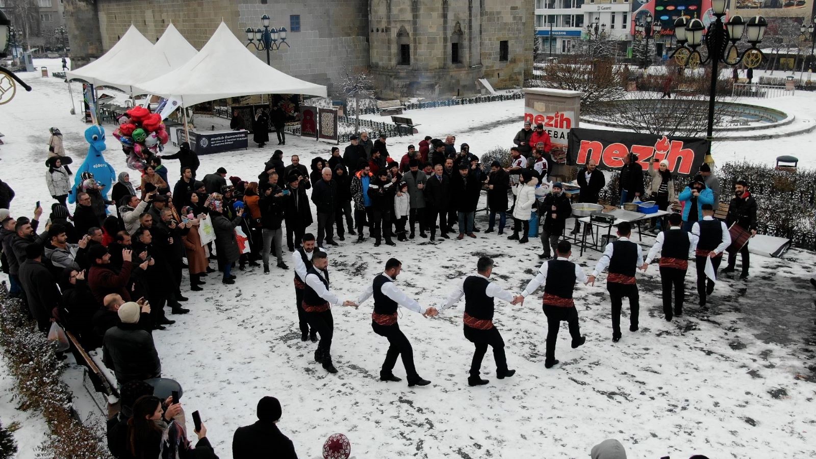Davul zurna eşliğinde yapılan Erzurum bar ekibi gösterisine vatandaşlar yoğun ilgi gösterdi.