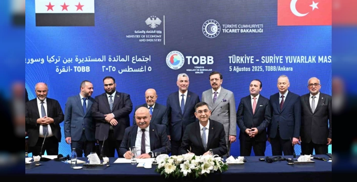 Türkiye Odalar ve Borsalar Birliği (TOBB) İkiz Kuleler’de düzenlenen Türkiye-Suriye Yuvarlak Masa Toplantısı'nda önemli bir adım atıldı. Ticaret Bakanı Prof. Dr. Ömer Bolat, Suriye Ekonomi ve Sanayi Bakanı Dr. Muhammed Nidal El Şaar ve TOBB Başkanı M. Rifat Hisarcıklıoğlu'nun katılımıyla gerçekleşen toplantıda, Gaziantep Sanayi Odası (GSO) ile Halep Sanayi Odası arasında iş birliği protokolü imzalandı.