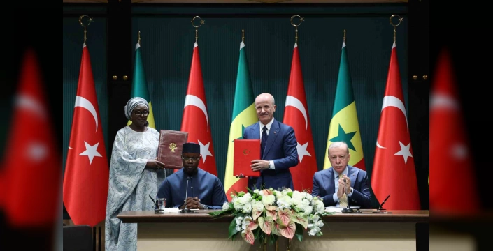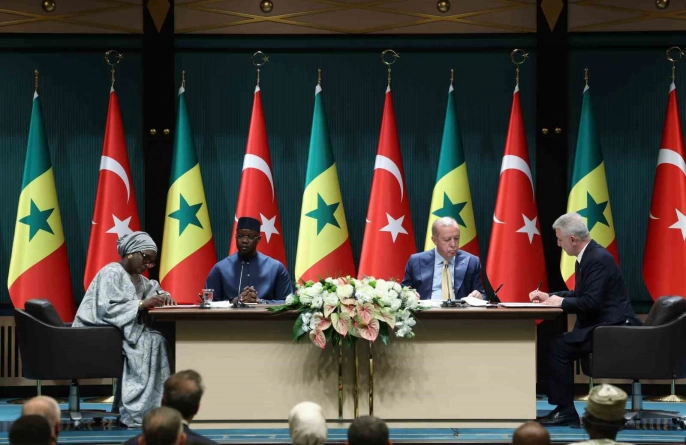 Cumhurbaşkanı Recep Tayyip Erdoğan ve Senegal Başbakanı Ousmane Sonko’nun katılımıyla, iki ülke arasında önemli iş birliklerini kapsayan dört anlaşma imzalandı. İkili ve heyetlerarası görüşmelerin ardından düzenlenen törende, anlaşmaların imzalanması gerçekleşti.