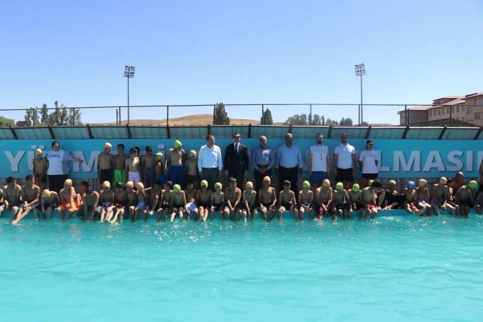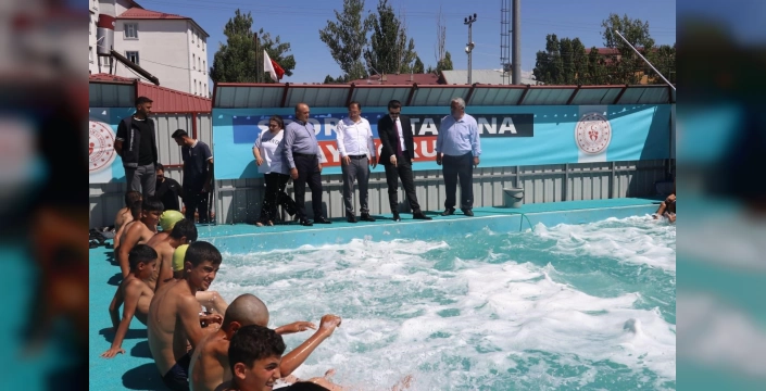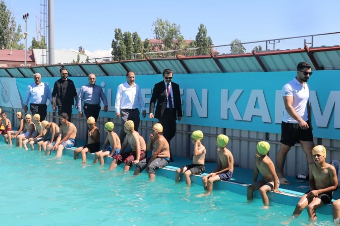 Ağrı'nın Tutak ilçesinde hizmete açılan portatif yüzme havuzu, düzenlenen bir programla yetkililer tarafından ziyaret edildi. Tutak Kaymakamı Ahmet Coşkun, Gençlik ve Spor İl Müdürü Ahmet Çelebi ve Gençlik ve Spor İlçe Müdürü Metin Arslan, havuzda incelemelerde bulundu.