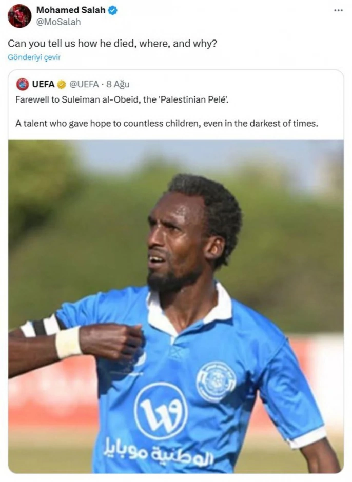 UEFA'nın pankartta İsrail'in adını anmaması ve paylaşımının altında binlerce tepki mesajı ve eleştiri yorumunun yer alması dikkat çekti. 'Yazıklar olsun', 'utanmazlar' gibi yorumlar sosyal medyada yaygınlaştı. UEFA'nın taziye mesajında İsrail saldırısında hayatını kaybeden Filistinli futbolcu Süleyman Ubeyd'in ölüm şekli ve yerini belirtmemesine yönelik eleştiriler de yoğunlaştı. Mohamed Salah başta olmak üzere birçok kişi UEFA'yı eleştirdi.