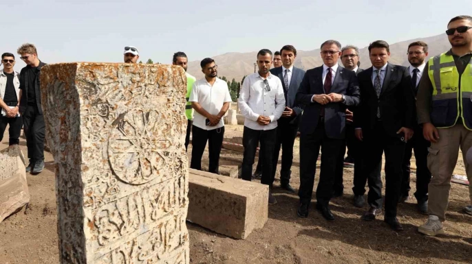 Van Valisi ve Büyükşehir Belediye Başkan Vekili Ozan Balcı, Gevaş ilçesindeki tarihi Selçuklu Mezarlığı'nda yürütülen kazı ve restorasyon çalışmalarını yerinde inceleyerek yetkililerden bilgi aldı.