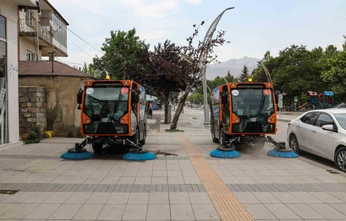 Yüzde yüz yerli üretim olan bu güçlü vakumlu süpürgeler, Erek Dağı Caddesi'nde ilk görevlerine başladı. Hidrostatik yürüyüş sistemi, gelişmiş kamera monitör sistemi, güçlü vakumlama özelliği, dar alanlarda manevra kabiliyeti ve yüksek basınçlı yıkama gibi özellikleriyle dikkat çeken araçlar, 72 ana arterde profesyonel temizlik hizmeti sunacak. Kaldırımlar, yaya yolları, caddeler, parklar ve bulvarlar bu modern araçlarla daha hızlı ve etkili bir şekilde temizlenecek. Bu sayede hem şehrin temizliği artacak hem de çevre kirliliği azaltılacak, milli ekonomimize de katkı sağlanacaktır.