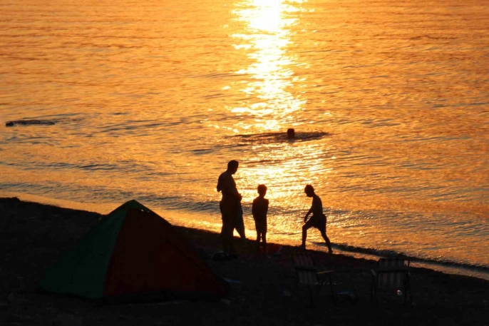 Van'ın Gevaş ilçesinde etkili olan sıcak hava dalgası, vatandaşları Van Gölü'nün serin sularına yönlendirdi. Yaz sıcaklarının artmasıyla birlikte, Van Gölü kıyısındaki Gevaş, Edremit, Tuşba ve Erciş ilçelerinde sahil şeritleri yoğunlukta. Hafta sonu ve hafta içi fark etmeksizin, Gevaş sahili vatandaşların ve ailelerinin uğrak noktası oldu.