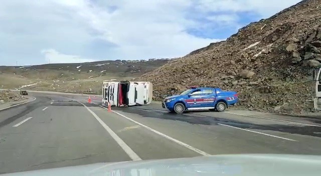 Edinilen bilgiye göre, Erzurum-Çat istikametinde seyreden plakası öğrenilemeyen tır direksiyon hakimiyetini kaybederek virajı alamadı ve yan yattı. Tır’ın yan yattığını gören sürücüler hemen sağlık yetkililerini ve jandarmayı arayarak bilgi verdi. İhbar üzerine olay yerine gelen jandarma ekipleri önlem aldı. Kazada hafif şekilde yaralanan sürücü ambulans ile hastaneye kaldırılarak tedavi altına alındı.