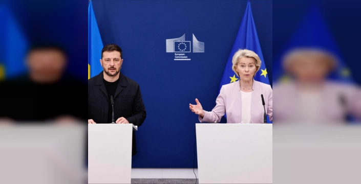 Avrupa Birliği (AB) Komisyonu Başkanı Ursula von der Leyen ve Ukrayna Devlet Başkanı Volodimir Zelenski, Brüksel'de bir araya geldi. Ortak basın toplantısında konuşan von der Leyen, uluslararası sınırların zorla değiştirilemeyeceğini, bu kararların Ukrayna'nın ve yalnızca Ukrayna'nın verebileceğini vurguladı. Ukrayna masada olmadan bu kararların alınamayacağını da sözlerine ekledi.