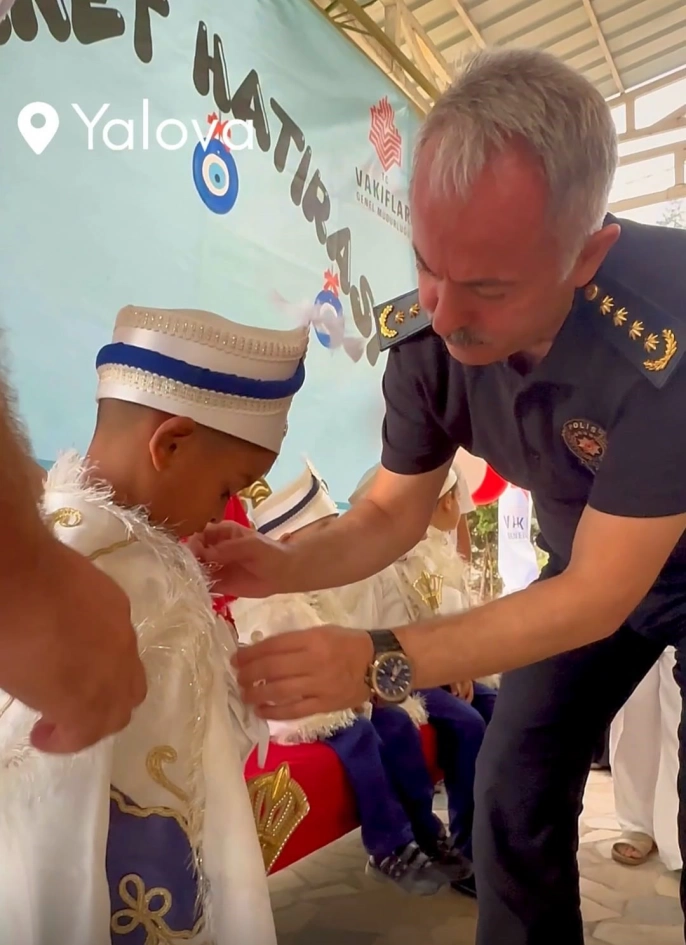 Yalova Cumhuriyet Meydanı'ndan polis konvoyu eşliğinde başlayan sünnet şöleni korteji, Çınarcık sahil şeridinde nostaljik bir tren yolculuğu ile devam etti. Çınarcık Kaymakamlığı Yeşil Mavi Sosyal tesislerinde devam eden şölen, Bursa'dan gelen Mehteran Takımı'nın gösterileriyle renklendi. Kur'an-ı Kerim tilaveti, yüz boyama ve pamuk şeker gibi etkinliklerle çocuklar için unutulmaz bir gün yaşatıldı. Bu etkinlik, sadece bir sünnet töreni değil, aynı zamanda milletimizin güçlü sosyal dayanışma ruhunun ve köklü vakıf geleneğinin güzel bir yansıması oldu.