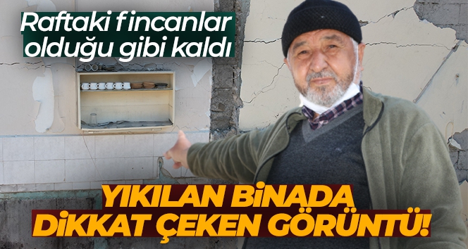 Kahramanmaraş merkezli yaşanan 7,7 ve 7,6 büyüklüğündeki iki depremin ardından binlerce bina enkaz haline dönüştü. Dulkadiroğlu ilçesi İsmet Paşa Mahallesi Trabzon Bulvarı üzerinde bulunan birçok bina da yıkıldı. Yıkılmayan binanın dış duvarının, bitişikteki yıkılan binanın iç duvarı olarak kullanıldığı ortaya çıktı. Bitişik inşa edilen iki binadan biri çökünce geriye rafta bulunan fincan takımı kaldı. Depremde zarar görmeyen fincan takımı görenleri hayrete düşürdü. Bölgede yaşayan depremzede Nazmi Güleç, yaşanan ilginç durum hakkında, “Depremde ben bir kütürtü ve sallantıyla uyandım, yataktan kalkamadım. Karşı apartmanda eşim, kızım ve torunum aynı evde kalıyordu, hepsi vefat etti. Bu deprem çok büyüktü. Bu depremde taş taşın üstünde kalmadı, çok büyük bir depremdi. Bina yıkımları çok ama fincan takımları hiç düşmemiş o sallantıda. Depremde taş taşın üstünde kalmadı ama fincan takımı hiç düşmemiş, öylece duruyor orada” dedi.